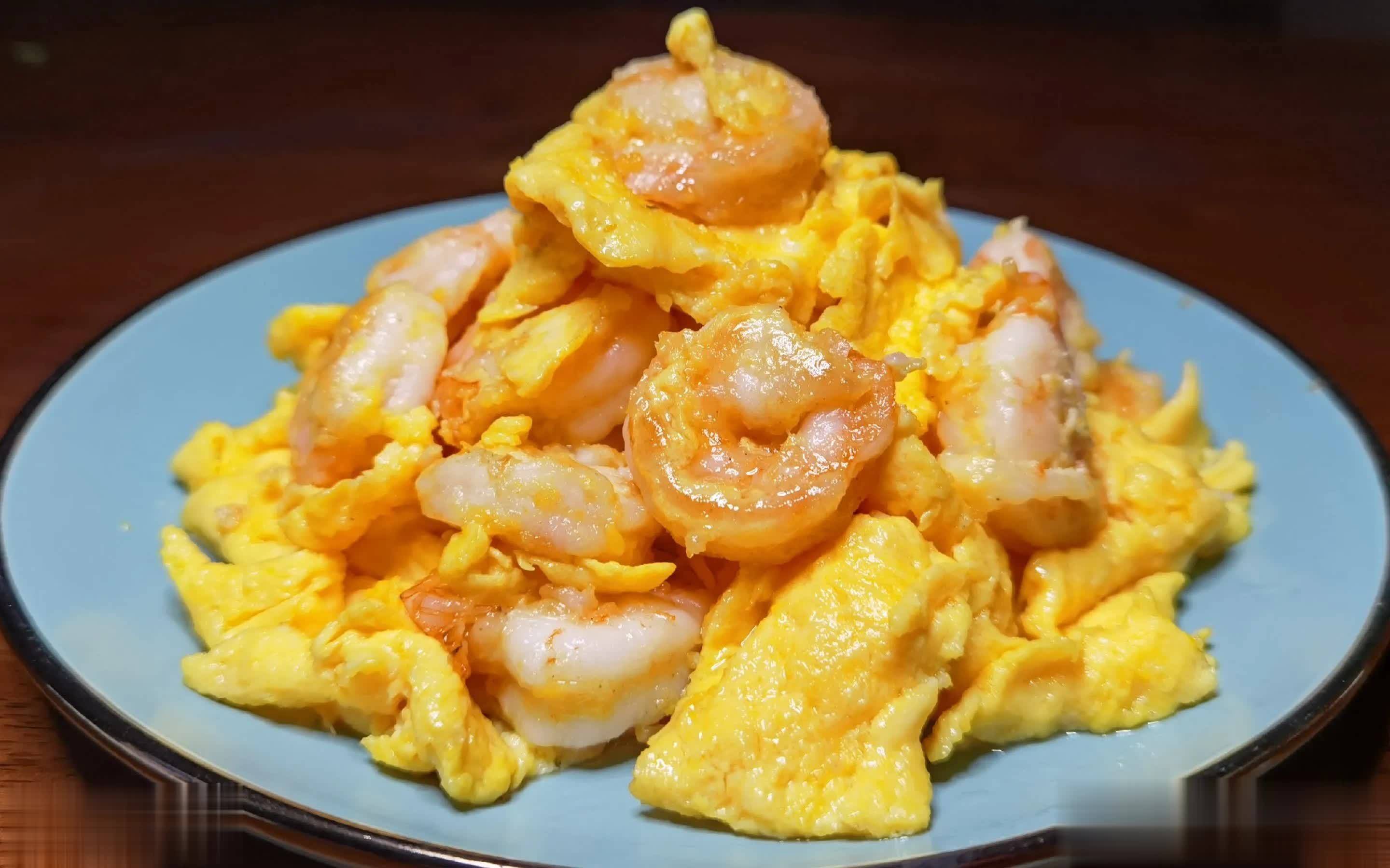 3、起锅烧油,油热后放入虾仁翻炒几下,炒至变色后盛出来放入鸡蛋液中搅拌均匀。