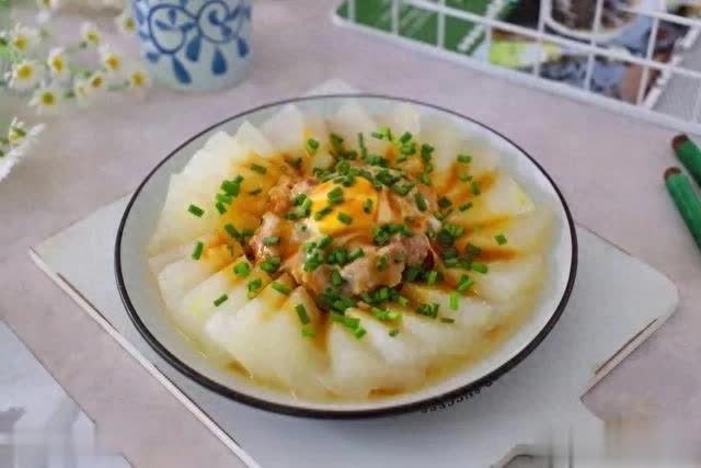 第五步:蒸锅烧开水,放入冬瓜,大火蒸10分钟,即可出锅享用。喜欢吃那种入口即化的冬瓜,可以多蒸5分钟。