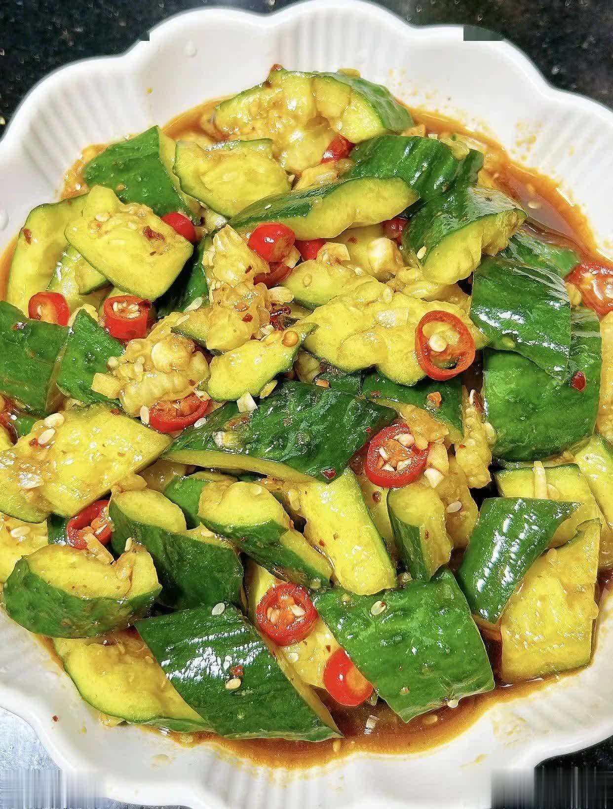 2、把黄瓜放入碗中天天配资网,加入蒜末、小米辣、食盐、白糖、生抽、醋和香油,搅拌均匀。