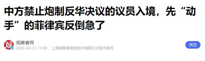 面对这种蓄意挑衅,中方没有惯着,当即就进行了外交斥责,并且很快拿出了反制措施。2月12日,中方正式宣布,禁止这16名炮制反华决议的菲律宾官员,入境中国内地以及香港、澳门地区,这份禁令当天就生效了。