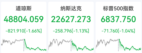 截至当地时间2月23日收盘,美股三大指数收盘均跌超1%,道指跌1.66%,纳指跌1.13%,标普500指数跌1.04%。