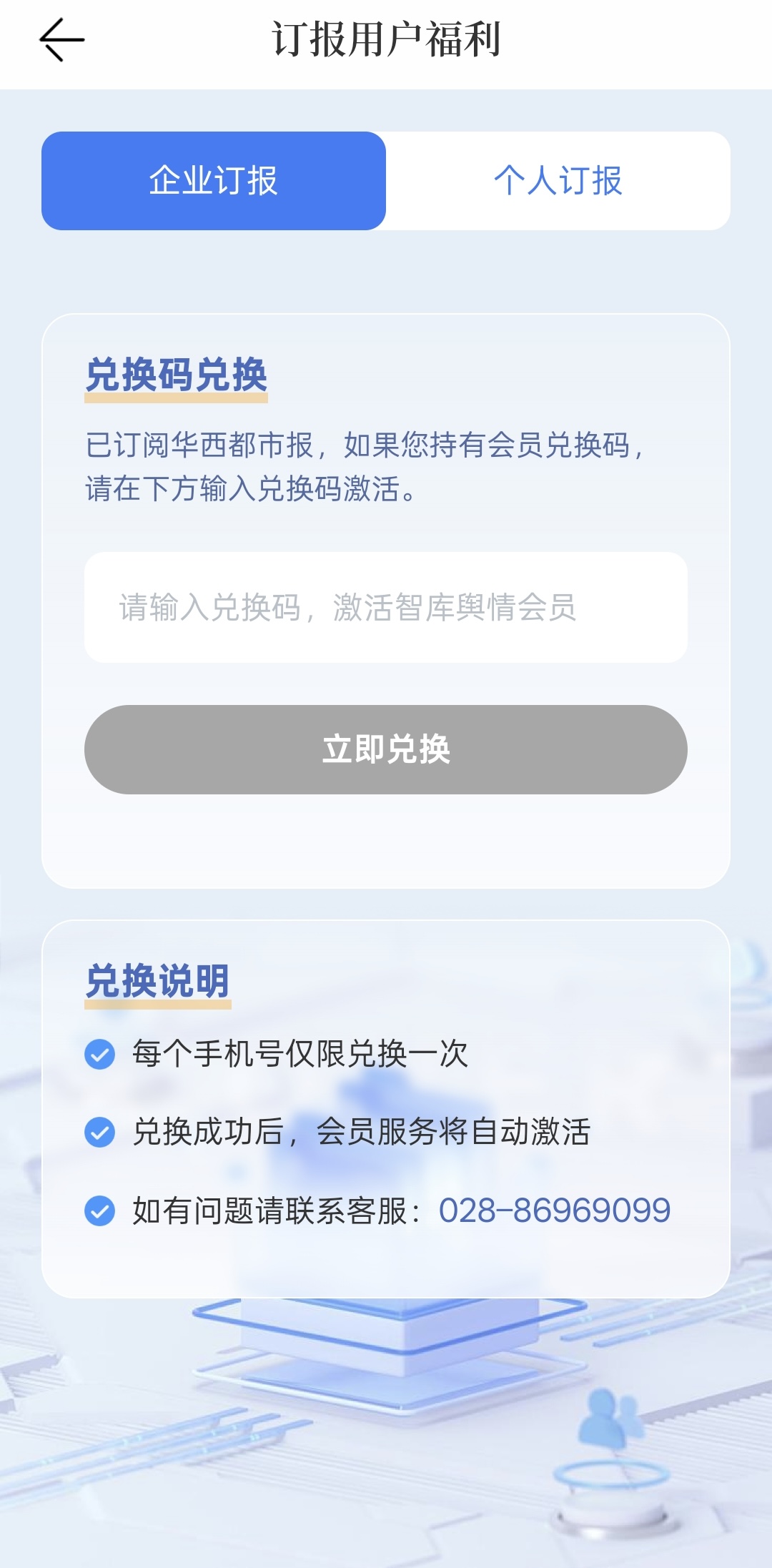 即日起,已订阅2026年度《华西都市报》的团体用户,凭发放的专属兑换码,即可在封面新闻APP一键激活智库会员,免费畅享深度内容服务。